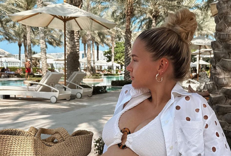 Molly Mae lounged by the pool whilst out in Dubai on a babymoon with her…