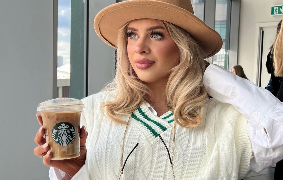 Love Islander Liberty Poole posed with an iced starbies to promote Lorna Luxe’s collection with…