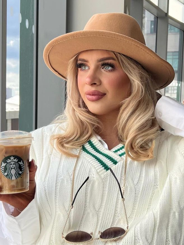 Love Islander Liberty Poole posed with an iced starbies to promote Lorna Luxe’s collection with…